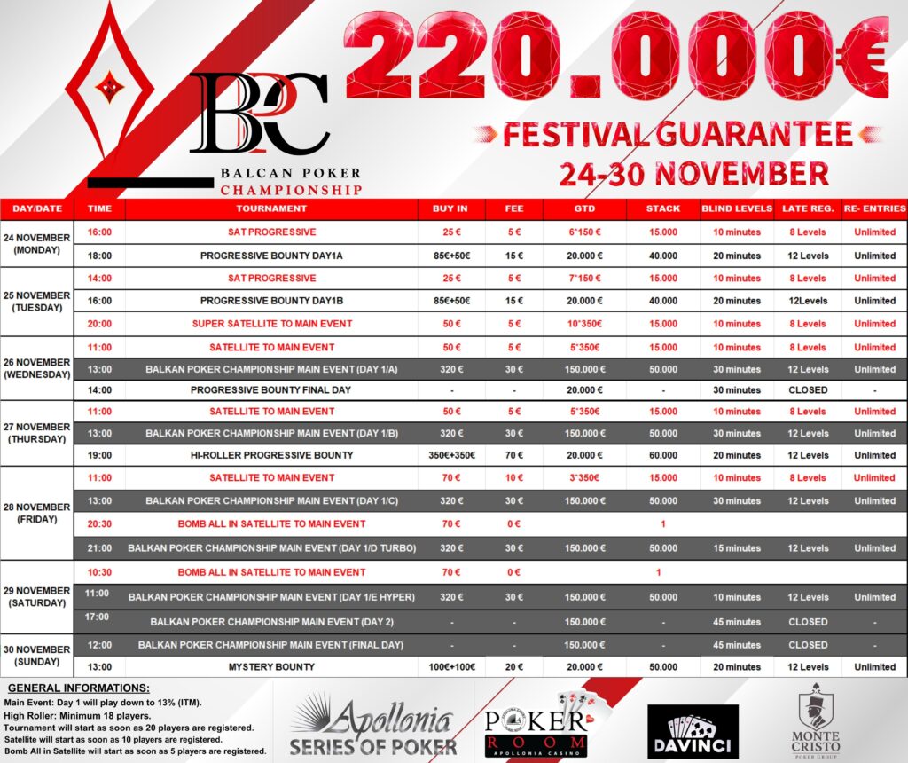 Balkan Poker Championship – Full Schedule 24-30 November 2025