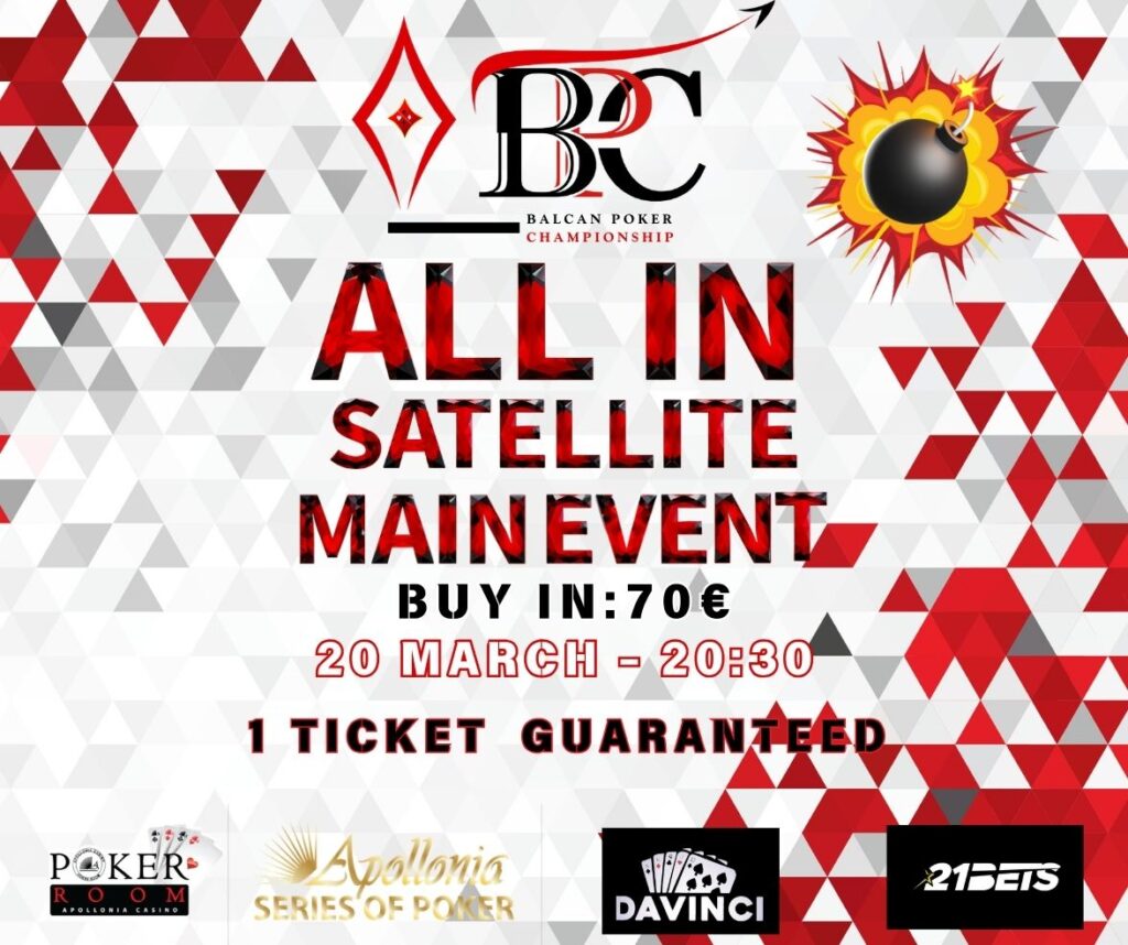 20:30 – Bomb All-In Satellite to Main Event Buy-in: €70
