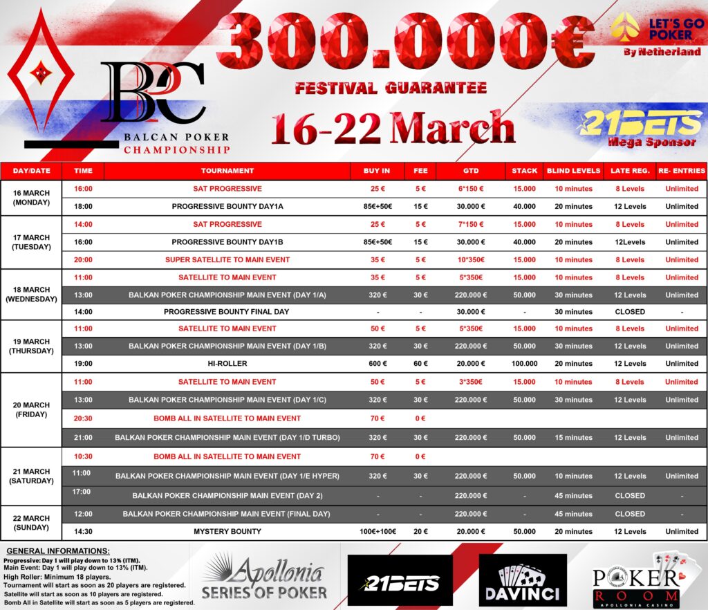 From March 16th to March 22nd, Apollonia Hotel & Casino Gevgelija will host players from across Europe for seven days of tournaments, diverse formats, and intense poker action, highlighted by a €300,000 Festival Guarantee.