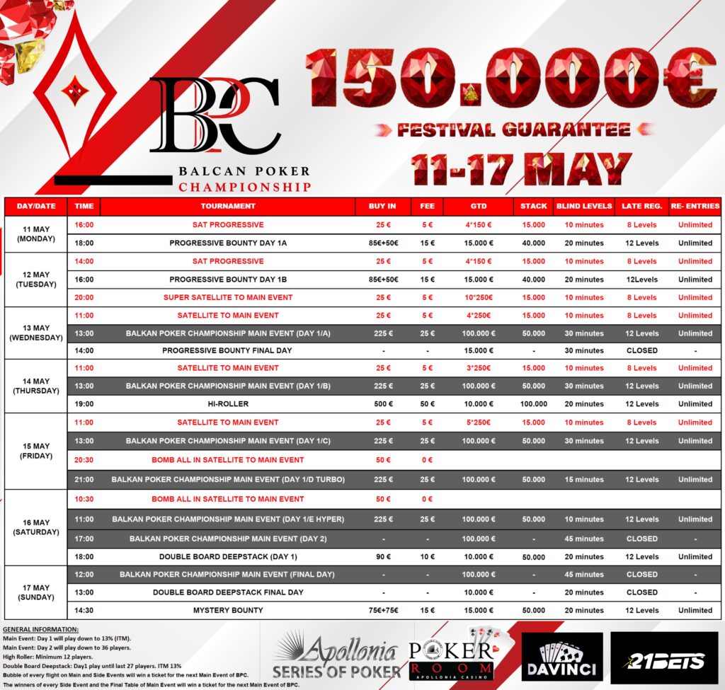 The Balkan Poker Championship returns this May, bringing a full week of action-packed tournaments to Apollonia Casino Gevgelija.